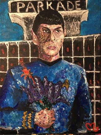 Mr. Spock has a date. She is supposed to meet him at the Parkade. Is she a no-show? Probably it's for the best. For inside his lilac bouquet is also one of those spore flowers from Omicron Ceti3. Mr. Spock! Oil.