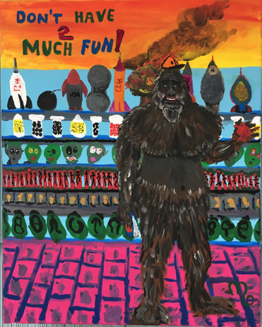 Mary is a constant visitor to our station. She keeps us apprised on the movements of the aliens, sasquatch, Kim Jong and dinosaurs in tour neighborhood. One day she was reading "Mars magazine" at Safeway. A guy came up to her and said "Don't have too much fun." Mary asked me why he would sat that to her. I asked if she was. "Was I what?" she asked back. "Were you having too much fun?" She thought about it and said "Maybe." Sasquatch has Mary's hat, magazine and heart. Acrylic.